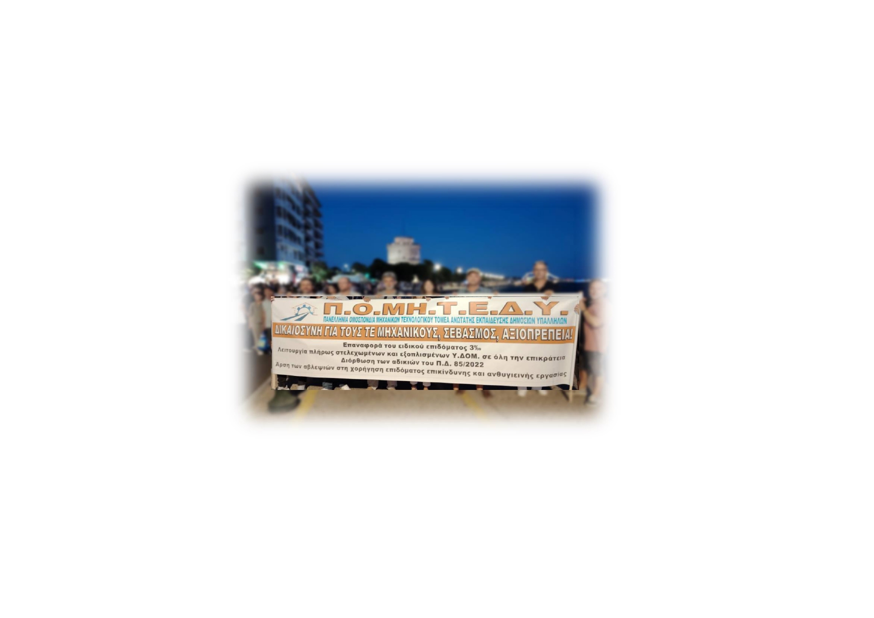 Με κεντρικό σύνθημα «ΔΙΚΑΙΟΣΥΝΗ ΓΙΑ ΤΟΥΣ ΤΕ ΜΗΧΑΝΙΚΟΥΣ – ΣΕΒΑΣΜΟΣ – ΑΞΙΟΠΡΕΠΕΙΑ», η Π.Ο.ΜΗ.Τ.Ε.Δ.Υ. έδωσε ξανά δυναμικά το παρών στο συλλαλητήριο της ΔΕΘ, το Σάββατο 6 Σεπτεμβρίου 2025, στη Θεσσαλονίκη.