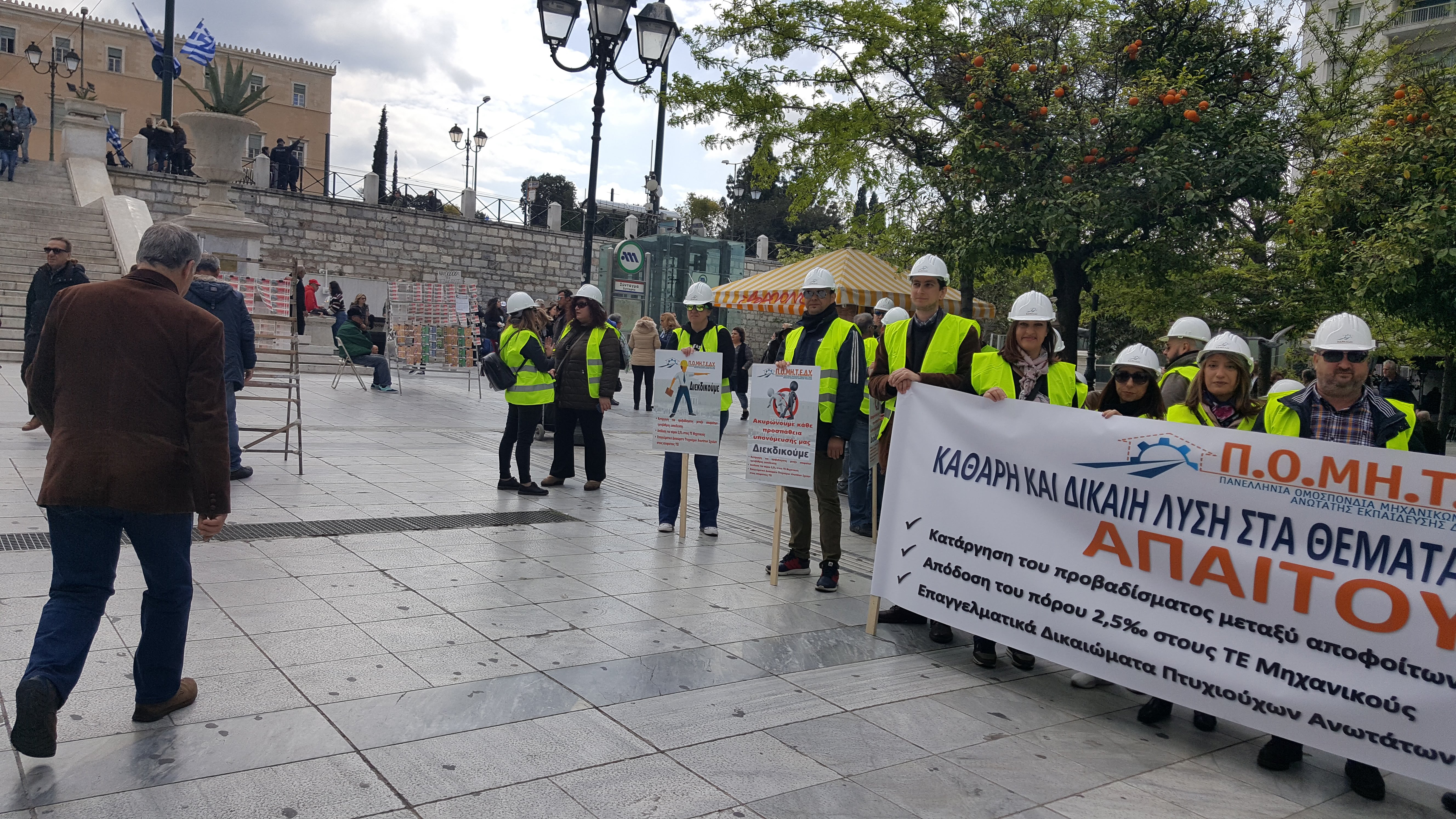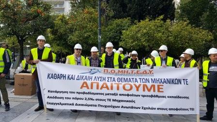 Την Παρασκευή 19 Απριλίου 2019 πραγματοποιήθηκε η προγραμματισμένη κινητοποίηση – συγκέντρωση και παράσταση διαμαρτυρίας των Μηχανικών ΤΕ, μελών από όλους τους Α’ βάθμιους Συλλόγους της ΠΟΜΗΤΕΔΥ.